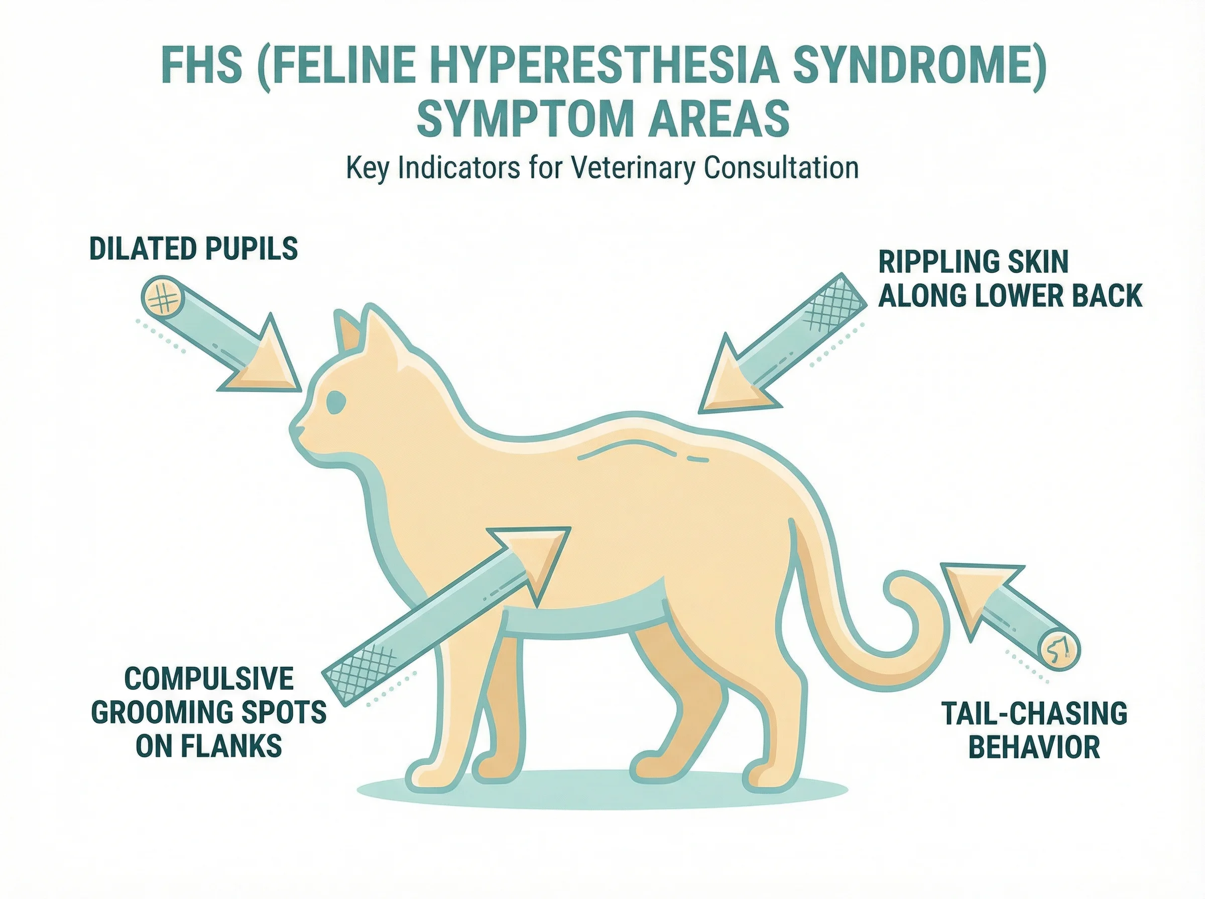 Because FHS heavily involves rippling skin and intense sensitivity, vets frequently start by investigating itch and skin discomfort.