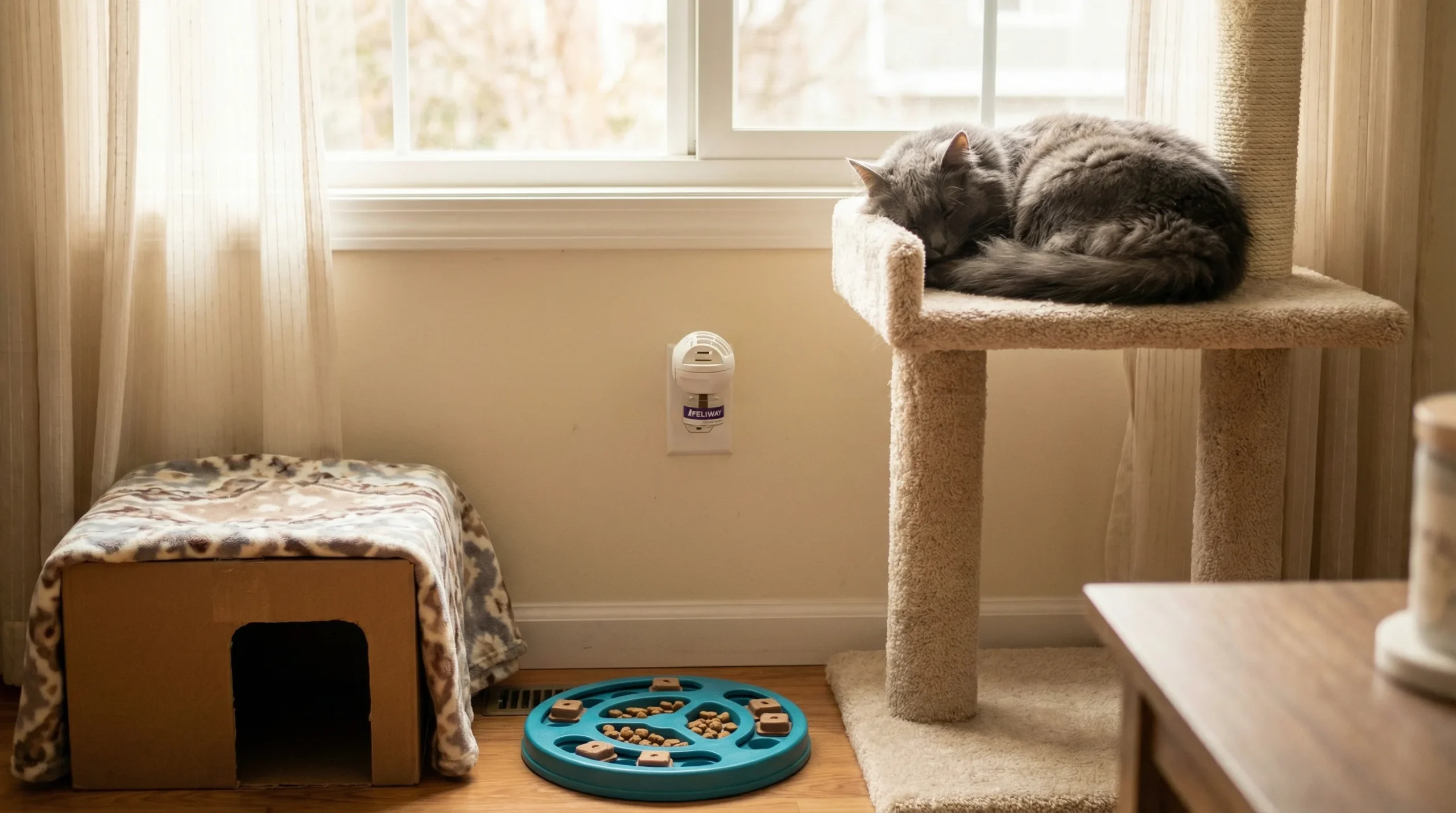 - Pheromone Diffusers: Products like Feliway mimic the natural calming pheromones cats produce, signaling that the environment is safe. Plugging these diffusers into the rooms where your cat spends the most time can significantly reduce their baseline stress.