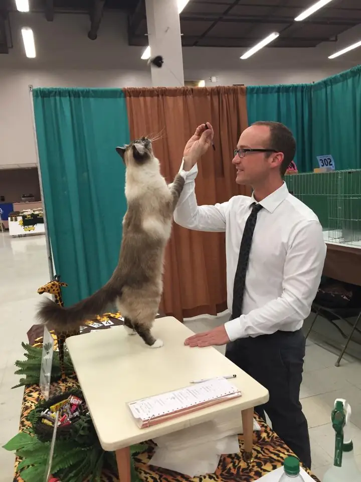 - Ask before touching any cat, and keep questions short when exhibitors are busy.